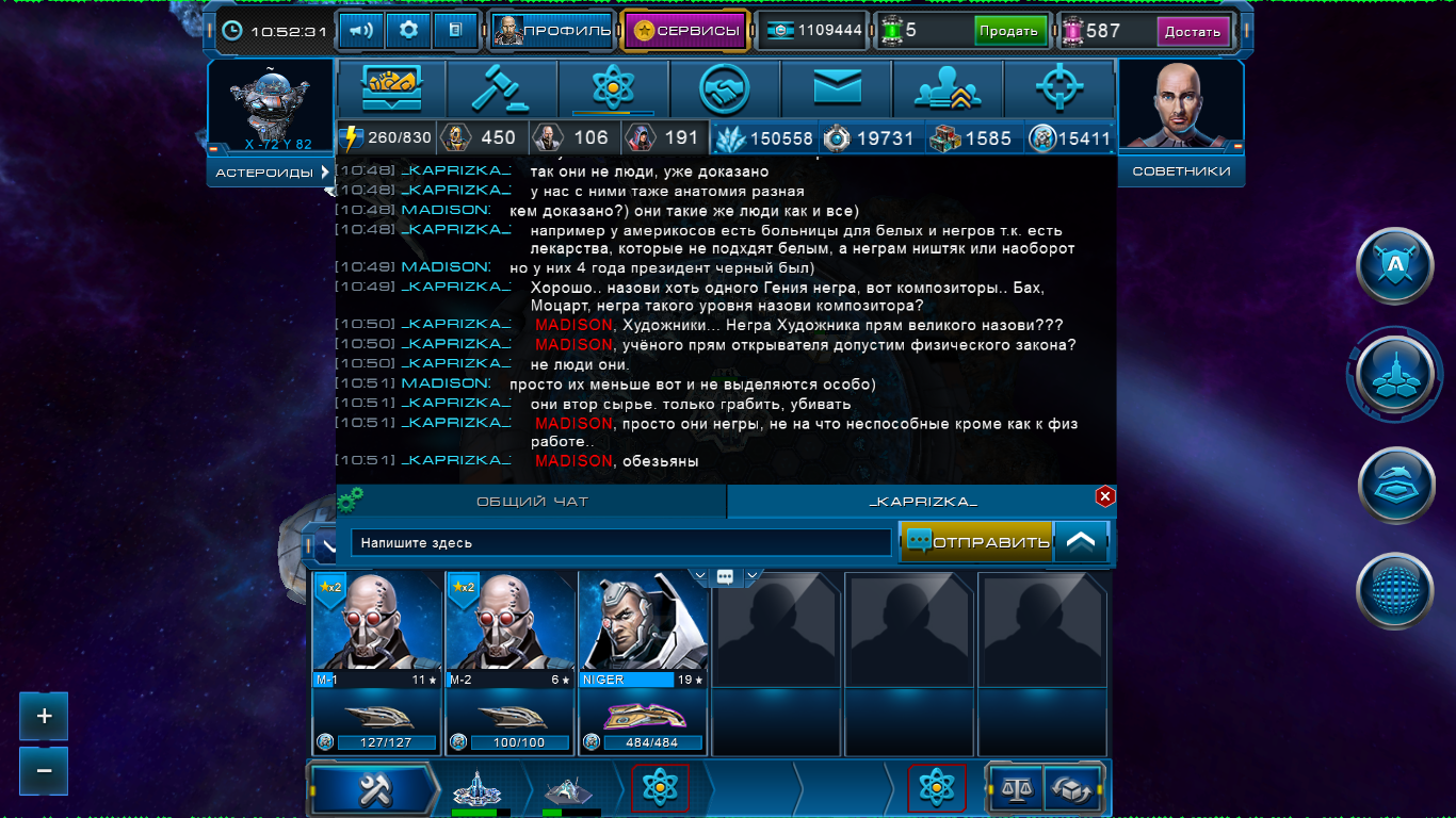 И вообще человек выложил не полную переписку, жаль начала чата нет с ним так как в процессе переписки перезаходила в игру.. но окончание разговора осталось. Меня тоже очень оскорбили его слова. Так же прошу просмотреть логи. что б понять суть всей беседы... что б была полная картина... А то человек просто спровоцировал меня, вытянул информацию.. просто тролинг... Любой может так сделать, написать к примеру нормальному мужчине, выскажи своё мнение о Геях... заскринить и на форум..мол я гей и меня оскорбили его слова. Так и тут, это чистой воды провокация!!! прошу разобраться в данной ситуации более глубже, чем просмотров скрина. узначть начало разговора и так далее... вот скрин окончания переписки... жаль начало не осталось... надеюсь на ваше понимание... http://prntscr.com/e2c9wlTarle писал(а):Выписал неделю бана.