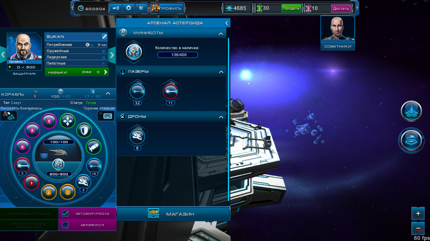 Как попасть на арену? В задании - провести тренировочный бой. Наука "Капитан" изучена, корабль в ангаре с вооружением. Кнопка арены так и не появилась.