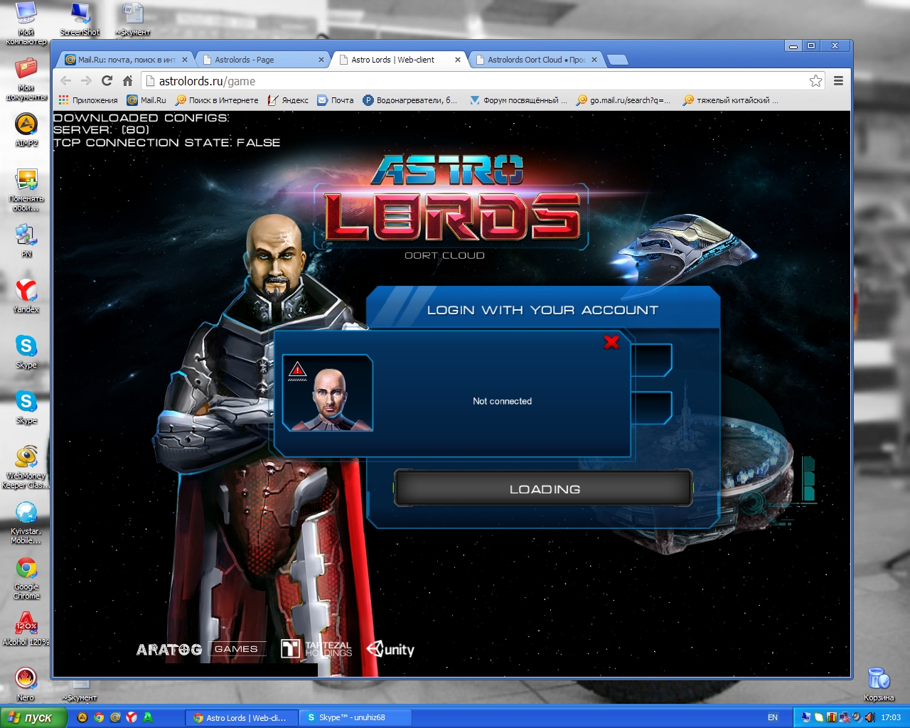Попробуйте ехе клиент. Скачать можно здесь: http://www.4sync.com/zip/opbIwZ3-/Astrolords2803.html